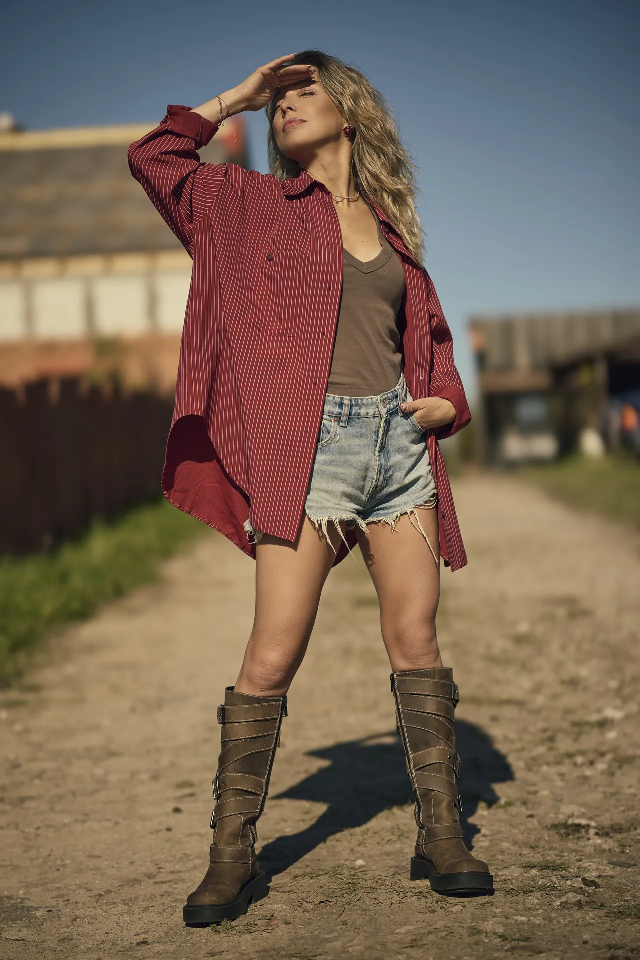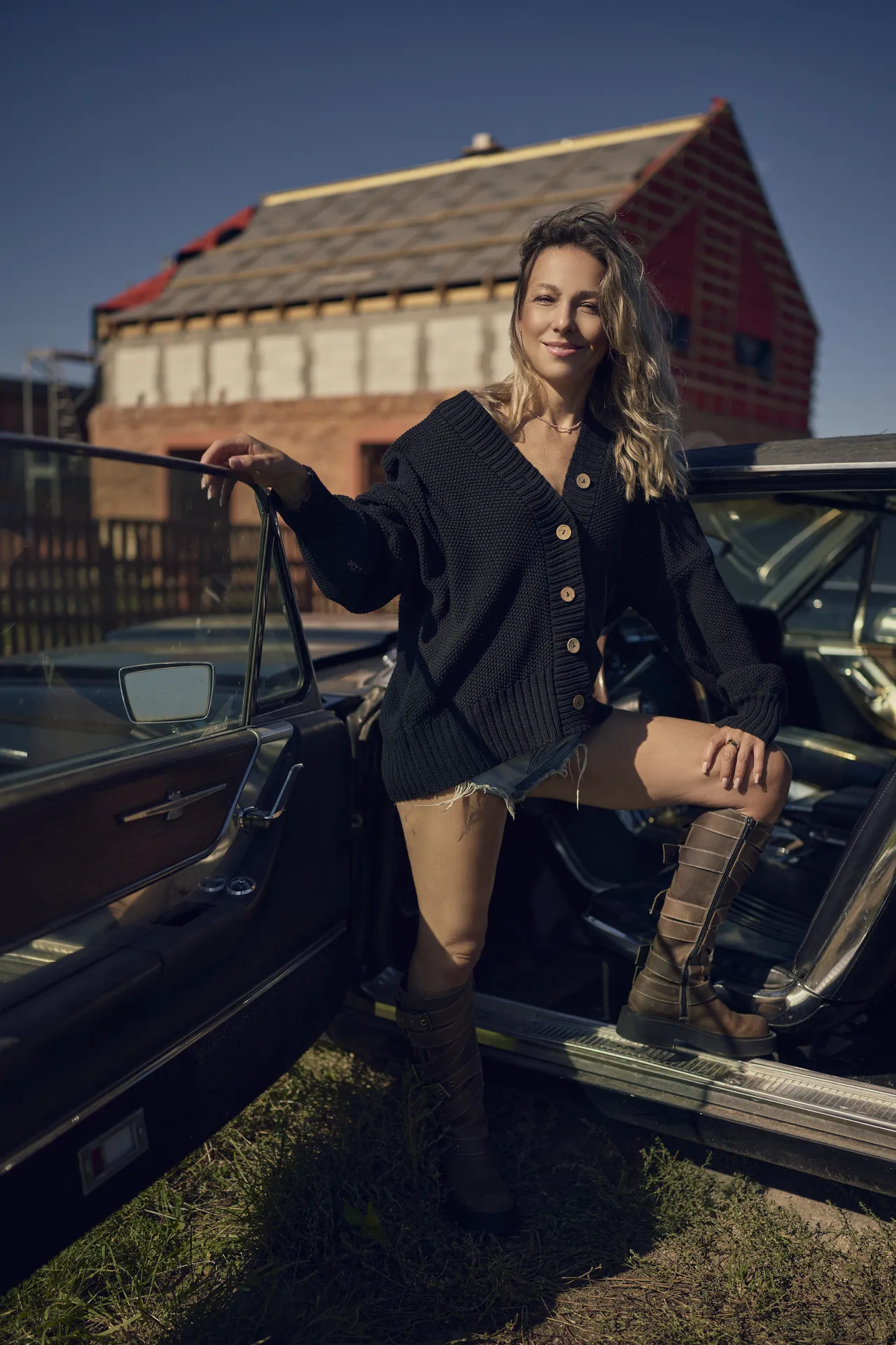 Wierzchucinek, z jego otwartymi przestrzeniami i malowniczymi krajobrazami, stał się idealnym tłem dla sesji w stylu hot road. Te kultowe samochody, znane z filmów i amerykańskiej kultury lat 50., wniosły do zdjęć energię i charakter. Naszym celem było stworzenie lookbooka modowego, który nie tylko zaprezentuje swetry i koszule, ale też opowie historię wolności, stylu i przygody.