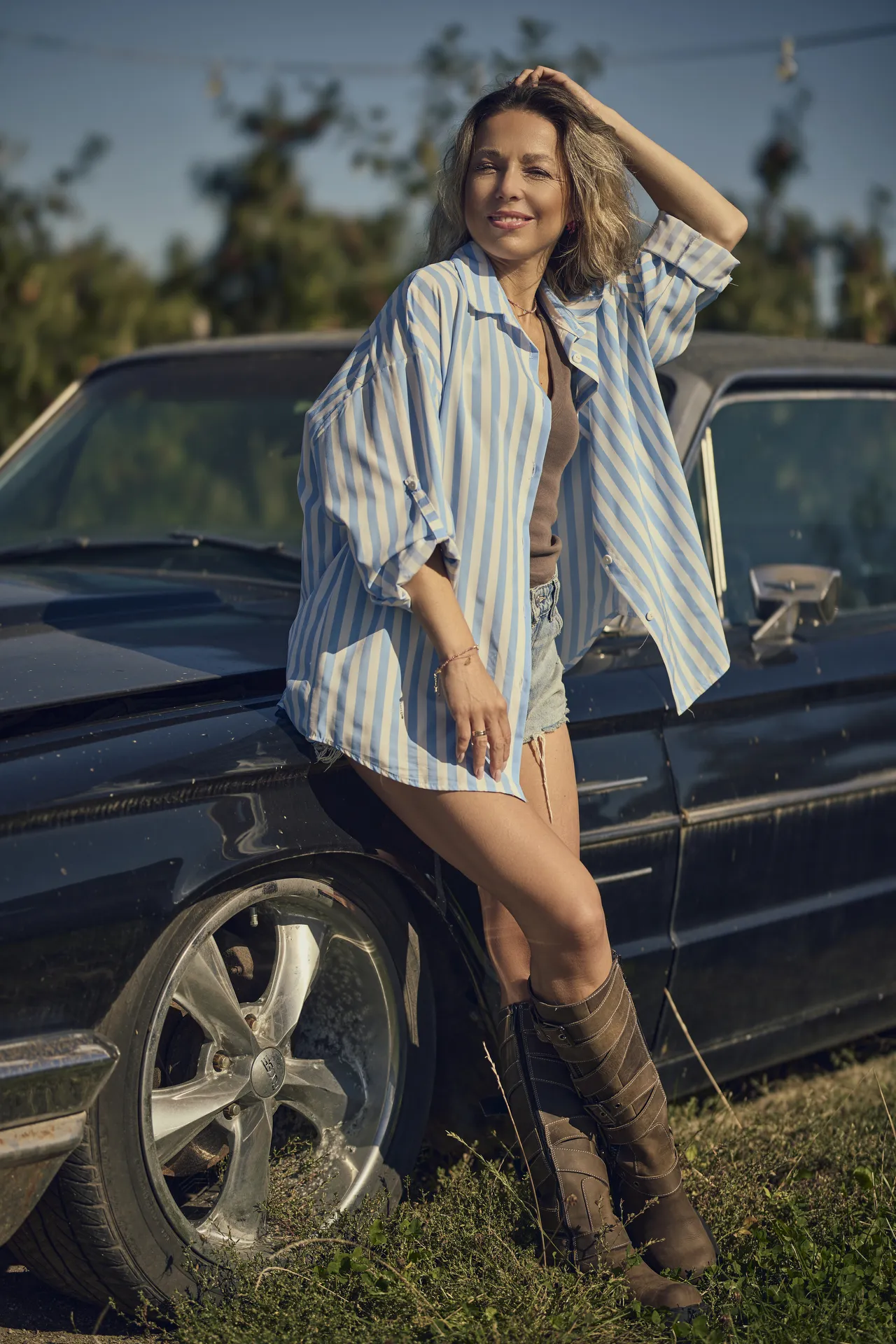 Marka „Swetry i Koszule” postawiła na klasyczne kroje i wysokiej jakości materiały – od miękkich, wełnianych swetrów po eleganckie, bawełniane koszule. Połączenie ich z surową estetyką hot roadów stworzyło kontrast, który przyciąga wzrok. Fotografia modowa w takim wydaniu to nie tylko zdjęcia – to sposób na wyróżnienie marki na rynku.